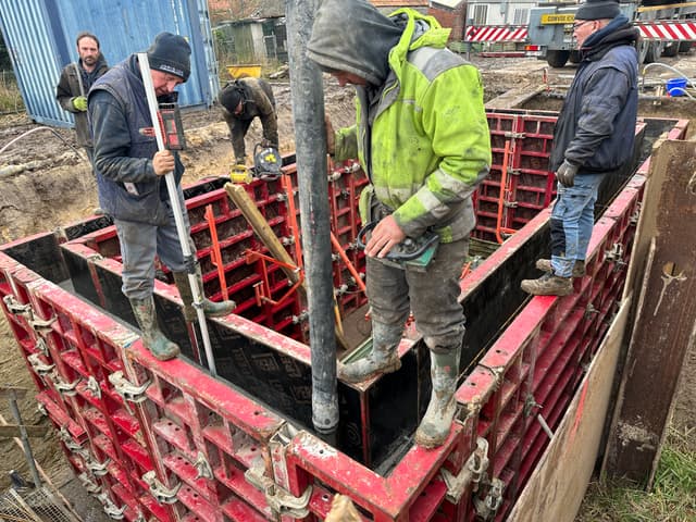 Fase 6 Het laatste grote werk: de wanden worden gegoten.