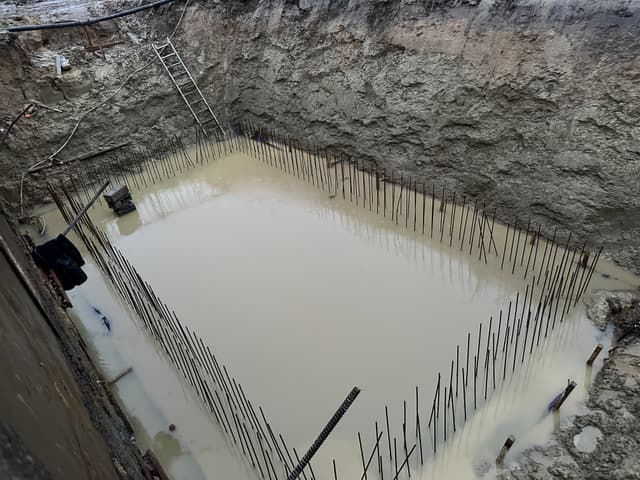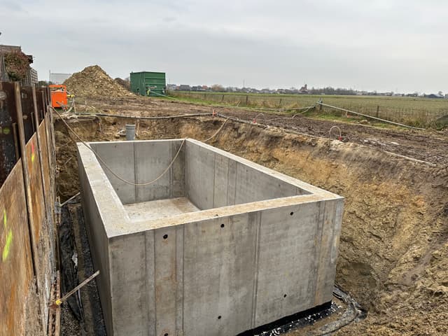 Fase 1 Eerst wordt de bronbemaling geplaatst om het grondwater af te voeren.